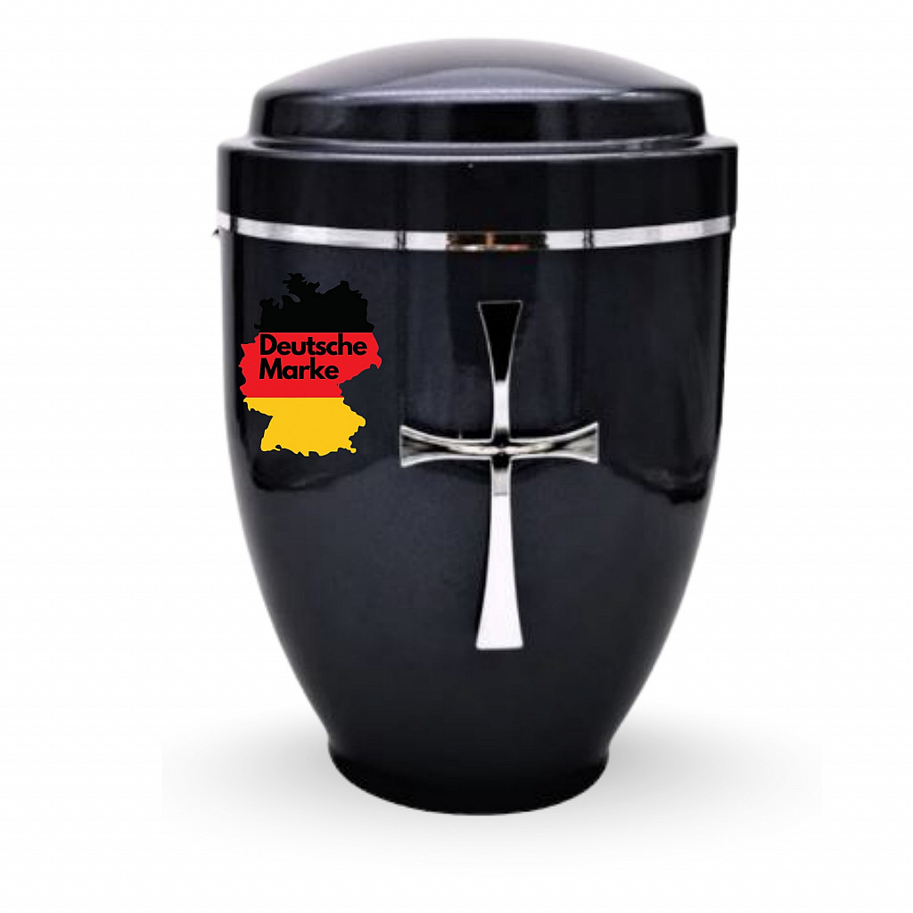 Elegante Metallurne mit silbernem Kreuz – Schwarze Gedenkurne mit Einsatz für Aschekapsel – 4,5 L Volumen