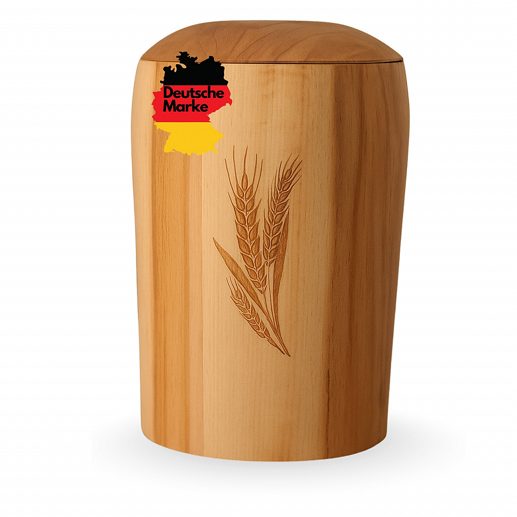Handgefertigte Urne aus Buchenholz mit Ährenmotiv – naturbelassen, ruhig & würdevoll