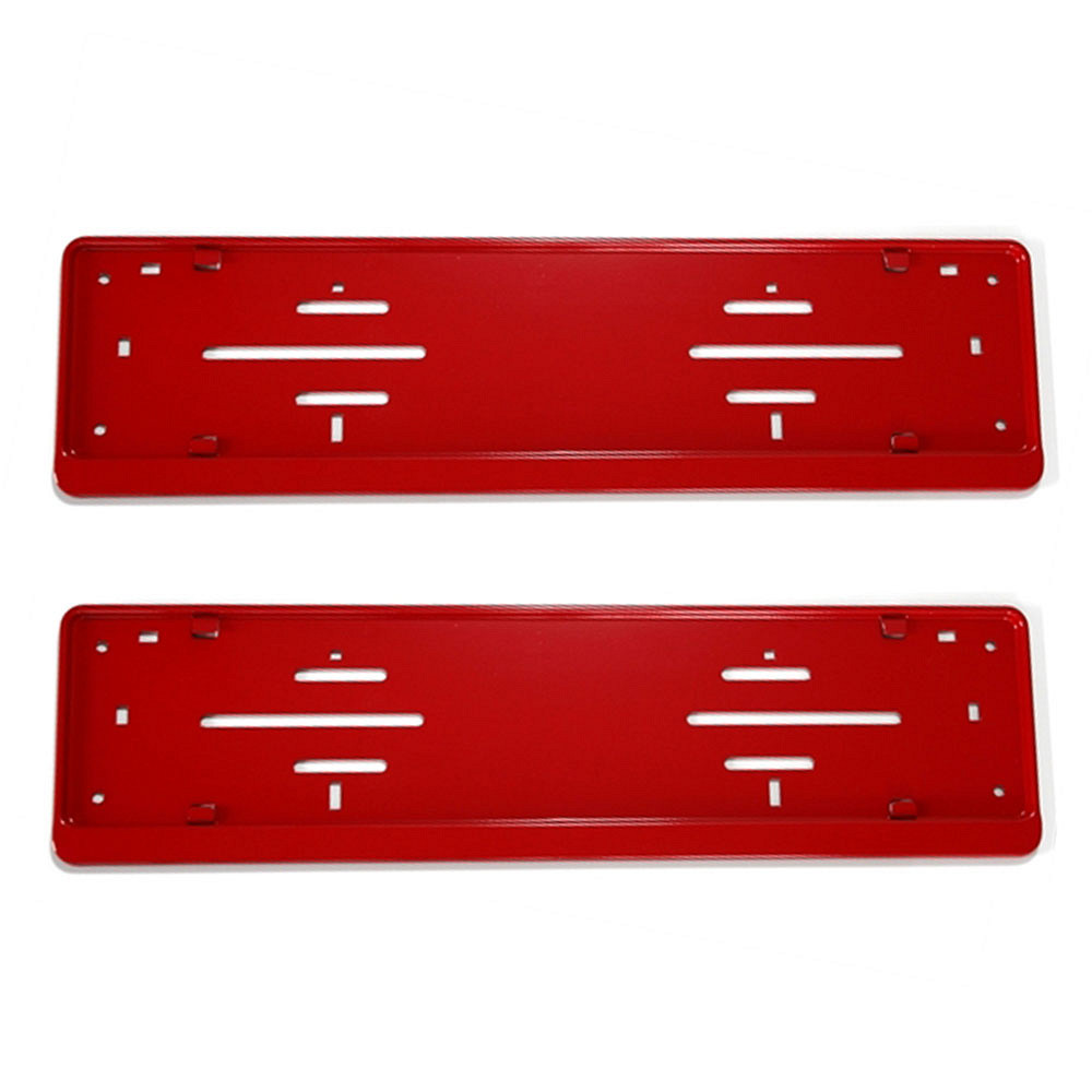 Nudimo vam 2x premium držača registarskih pločica izrađena od crveno prašno obloženog čelika. Ovi držači su dugotrajni i pružaju dugotrajno zadovoljstvo. Univerzalno su prikladni za njemačke i EU registarske pločice veličine 520mm x 110mm.