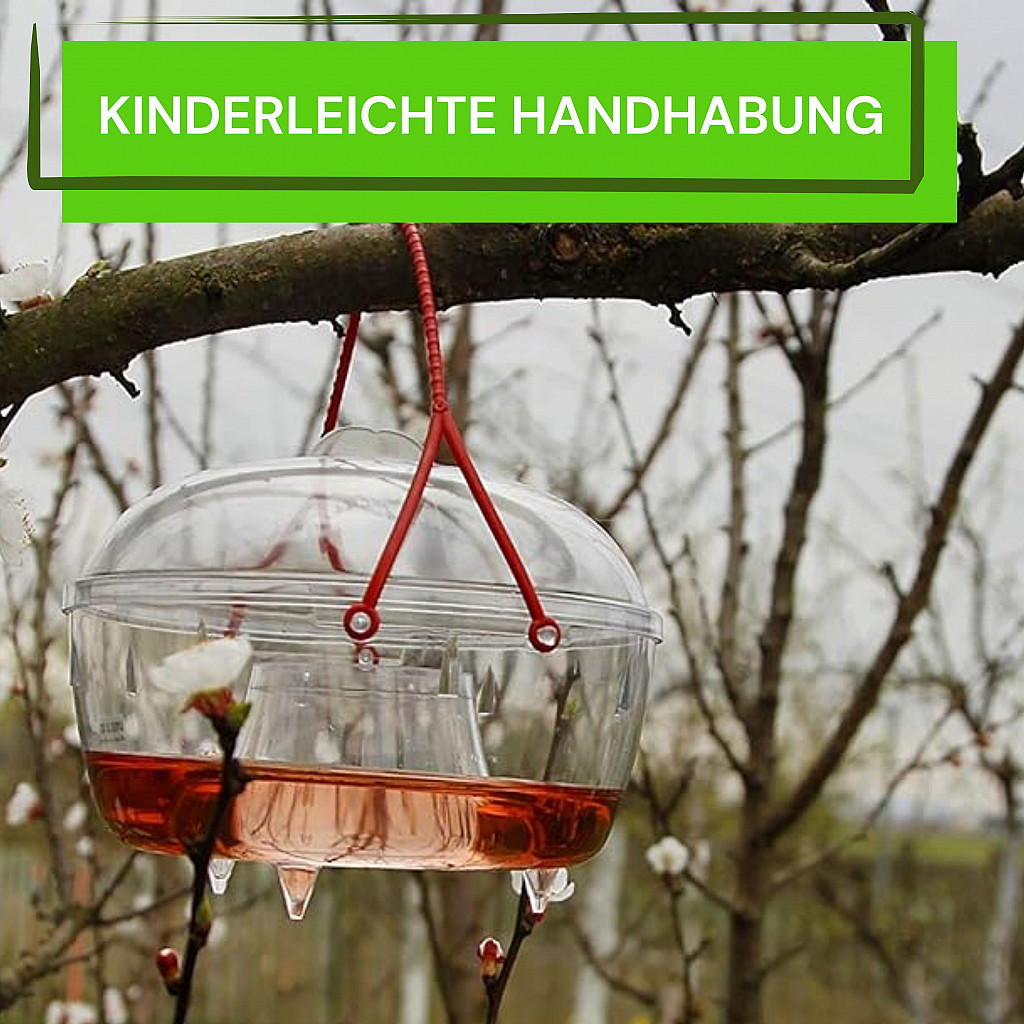 Uhvatite ose, stršljene, muhe, komarce i druge dosadne insekte jednostavno i učinkovito bez kemikalija – na prirodan način. Najveća zamka za ose i stršljene koju koriste profesionalci u voćarstvu sada dostupna i za vaš dom. Naša zamka za ose, stršljene i muhe posebno je korisna na terasi, balkonu, u vrtu, vinogradu, voćnjaku itd. za zaštitu od najezde insekata. Zamka je vrlo stabilna, a promjer od 18 cm omogućuje dugotrajno djelovanje prije nego što je treba ponovno napuniti. Ima veliko, lijevkasto ulazno otvor za najbolje rezultate. Kada insekt uđe, više ne može izaći. Bit ćete iznenađeni koliko insekata ćete uhvatiti s našom zamkom.