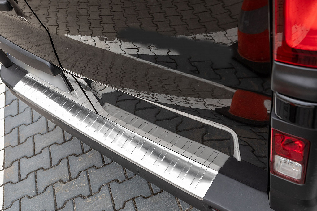 Zaštitna letva stražnjeg branika od nehrđajućeg čelika kompatibilna sa Renault Trafic 09.2014-06.2019 precizno pristajanje s dubokim zaštitnim rubom- boja brušeni nehrđajući čelik