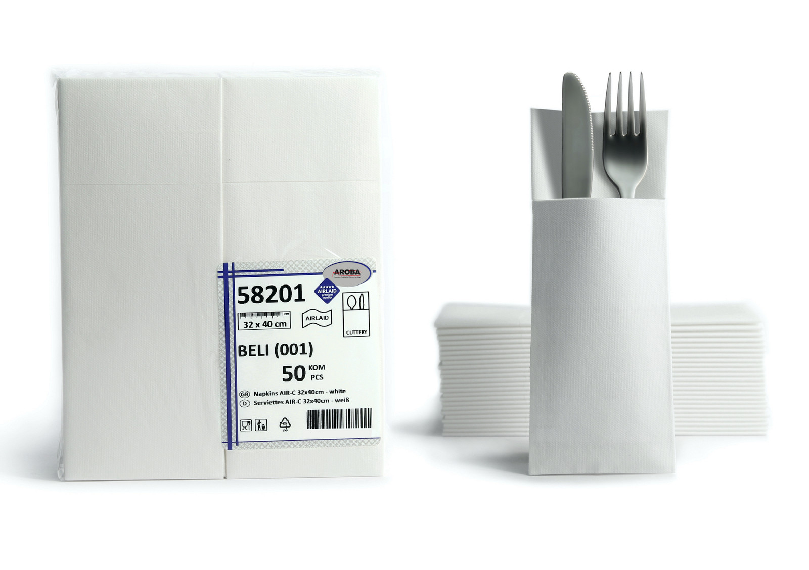 • / AROBA 250x Airlaid Servieti z zarezo za pribor (Weiß, 32x40 cm) - Hochwertige Serviettentaschen - Fertig gefaltete Bestecktaschen - Stoffähnliche Airlaidservietten