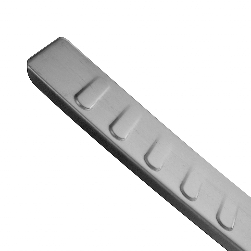 Aroba zaščitna letvica nakladalnega roba iz nerjavečega jekla ščiti nakladalni prostor pred praskami in poškodbami. Ta zaščita nakladalnega roba je posebej oblikovana, da se popolnoma prilega celotni površini in natančno ustreza obliki vašega odbijača.