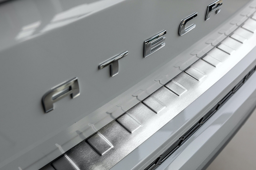 Aroba zaščita odbijača iz nerjavečega jekla, primerna za Seat Ateca in Ateca Cupra 07.2016-> , natančno odmerjeno in oblikovano za posamezen model vozila za popolno prileganje, izdelano iz visokokakovostnega nerjavečega jekla, barva krtačeno nerjaveče jeklo