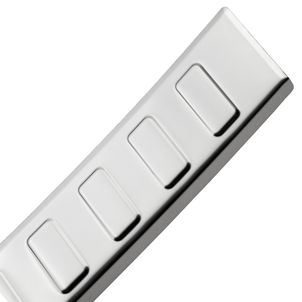 Aroba zaščitna letvica nakladalnega roba iz nerjavečega jekla ščiti nakladalni prostor pred praskami in poškodbami. Ta zaščita nakladalnega roba je posebej oblikovana, da se popolnoma prilega celotni površini in natančno ustreza obliki vašega odbijača.